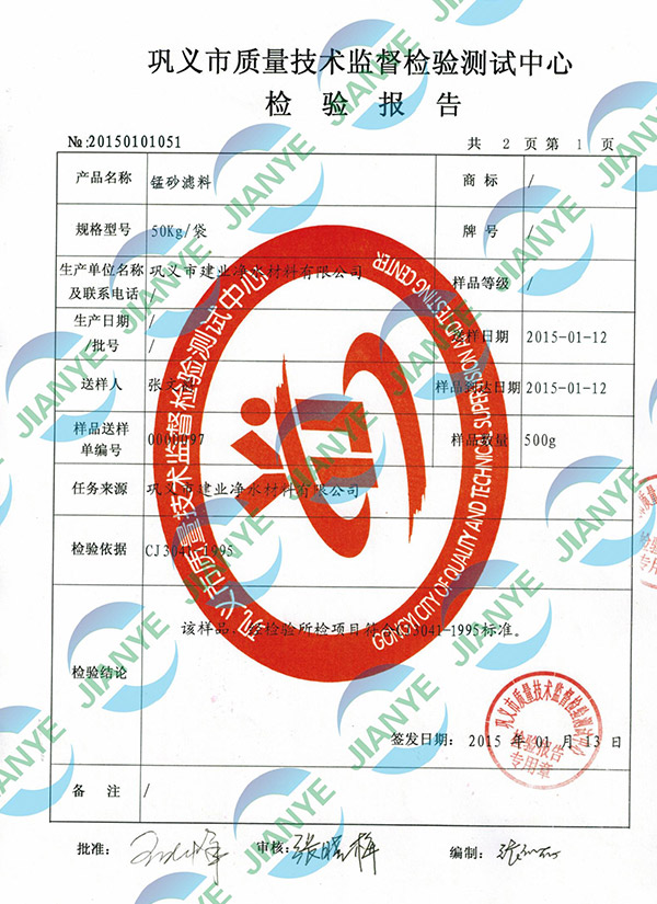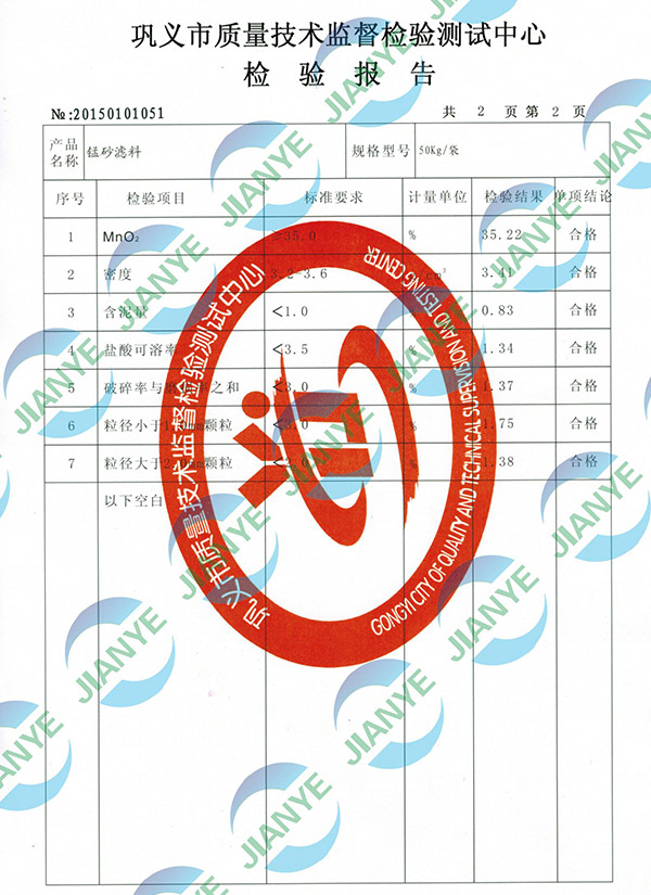 2020錳砂第三方檢測報(bào)告【建業(yè)凈水】